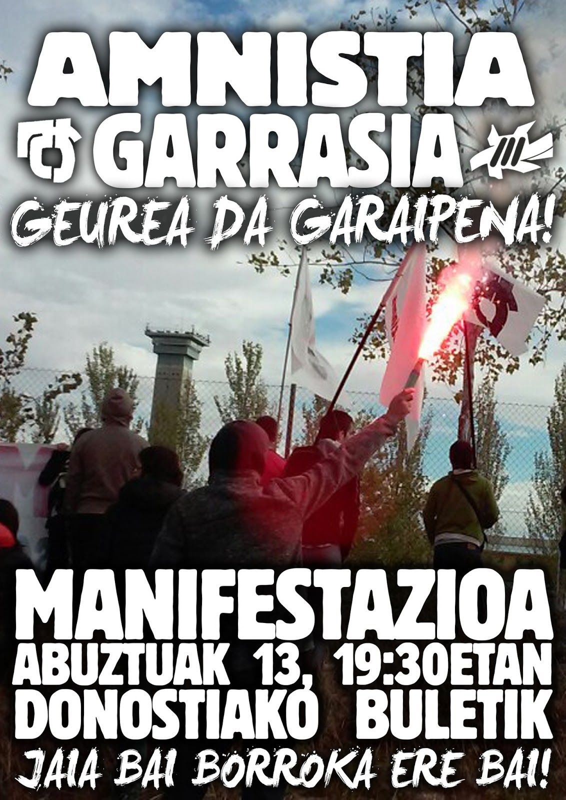 Amnistiaren Aldeko eta Errepresioaren Aurkako Mugimendua.- Nuestro movimiento define la amnistía como la vuelta a casa, sin condiciones, de l@s represaliad@s político@s y la resolución de las causas que originaron su existencia . Además, la defensa de la amnistía es la herramienta más importante para mantener el carácter político de este conflicto.
