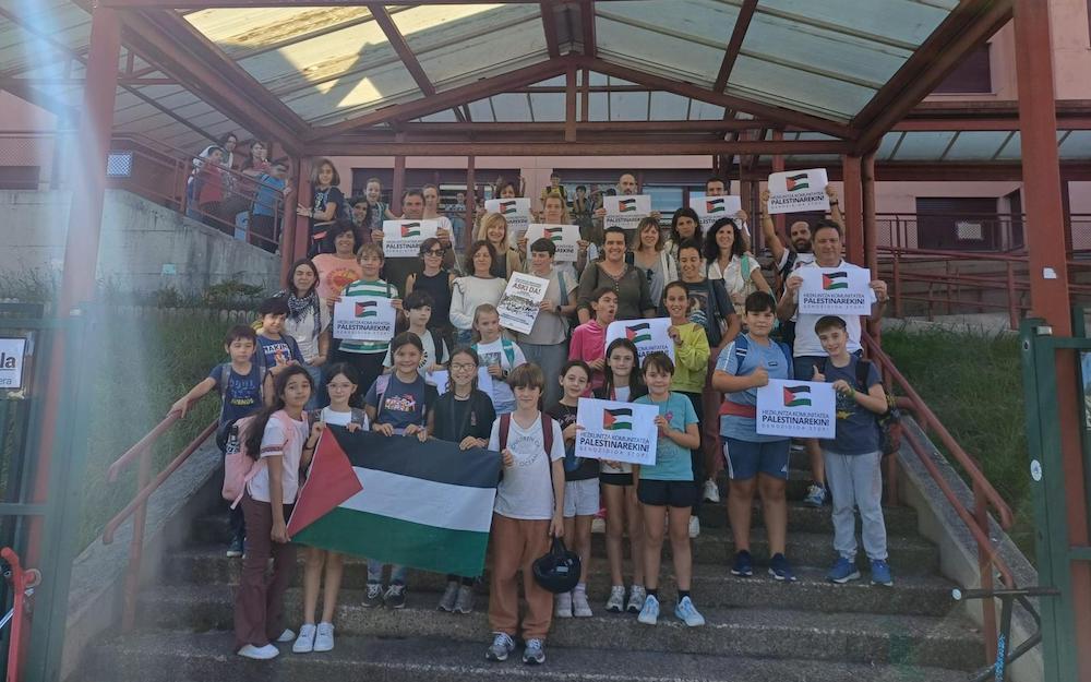 Teniendo en cuenta el genocidio que se está produciendo en Palestina y su repercusión en los niños y niñas y adolescentes, esta semana han vuelto a sumarse a la convocatoria numerosos centros escolares de Euskal Herria, a los que se ha adherido la plataforma Gure Haurren Ere Badira.