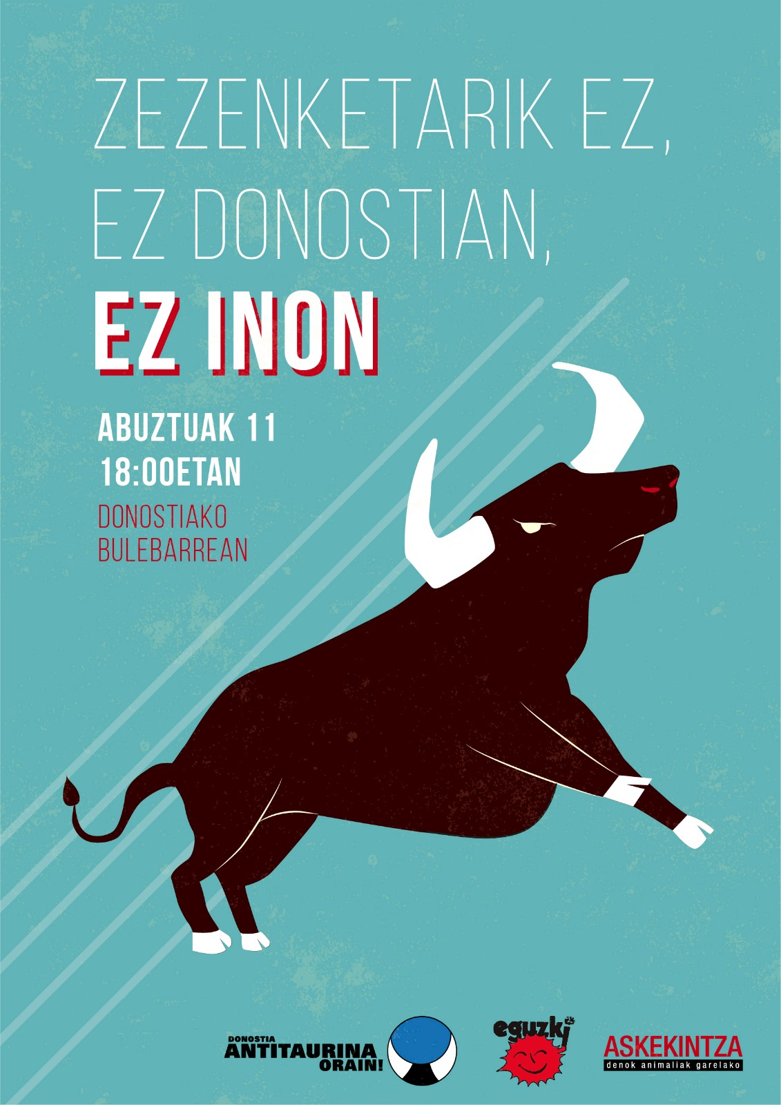 Larunbatean, abuztuak 11, Aste Nagusiaren hasieran, manifestazio antitaurinoa egingo dugu, “Zezenketarik ez, ez Donostian, ez inon” lemapean.