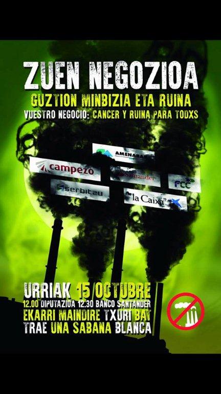 Larunbata honetan-urriak 15a- konzentrazio bat egingo da erraustegiaren aurka, "Zuen negozioa guztion minbizia eta ruina" lelopean.